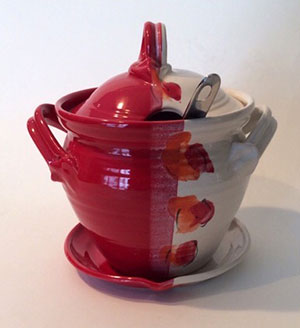 Soup Tureen Red, White, with Orange Accent |