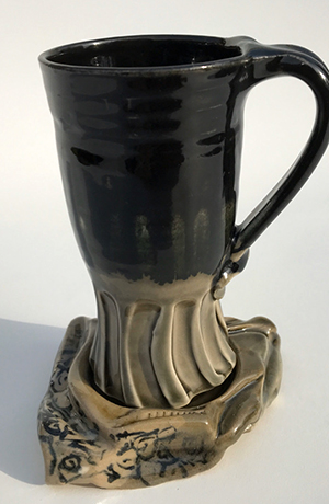Carved Mug and Carved Holder Taupe Grey and Black |