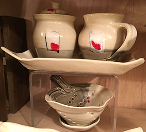 Sugar and Creamer with Tray, Off White and Grey with Red Dot Accent